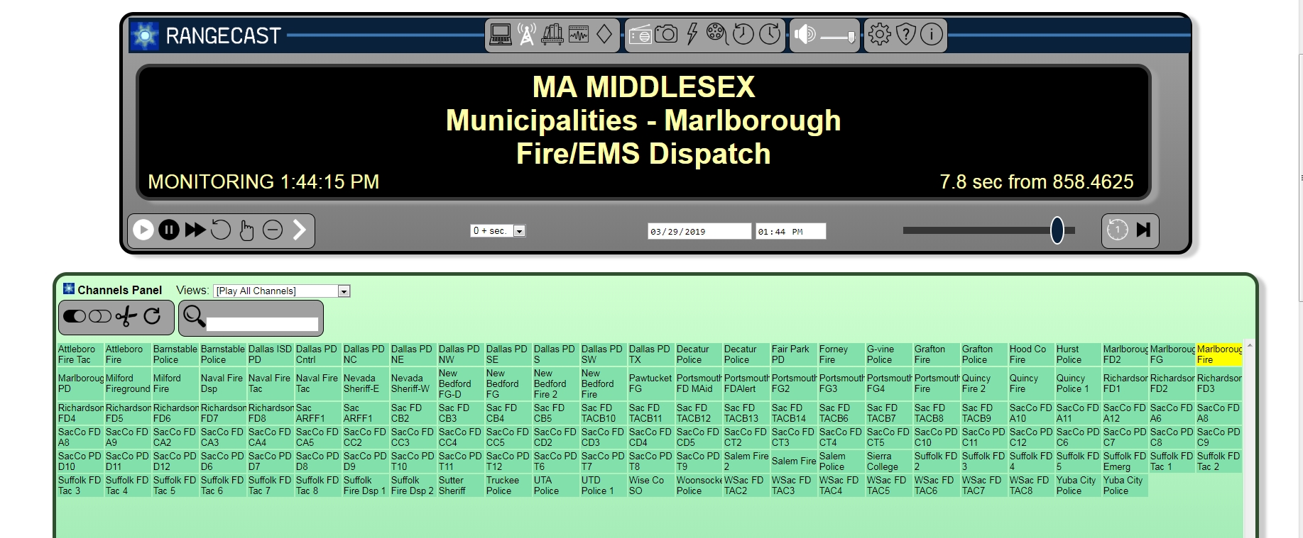 The Grid layout is selected by choosing the radio tower icon on the top of the display. When selected, this icon will appear in white. [img-layout-grid]