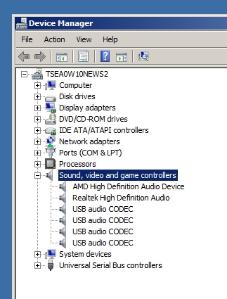 a) If RCX units are present, there will be one entry titled "USB audio CODEC" for each RCX unit (usually one for each attached scanner)