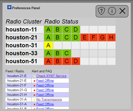 OVERVIEWThe Rangecast Player includes a report listing all radios providing audio content on the specific channels currently selected for reception. If there are any known technical problems with these feeds, the problem is identified, and FAQ links provided to help with resolution.